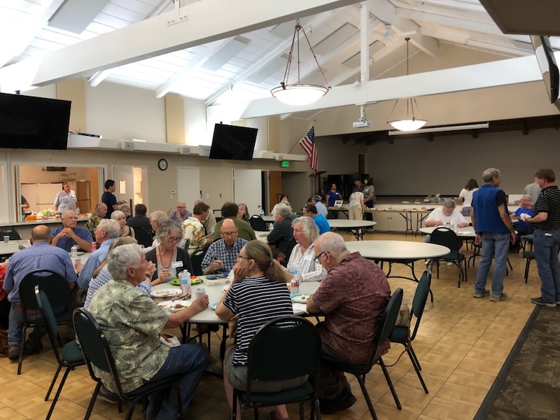 | A joint potluck was held by the Peninsula Gem & Geology Society, the Sequoia Gem & Mineral Society and the Bay Area Mineralogists at Shoup Park Garden House in Los Altos, California. |