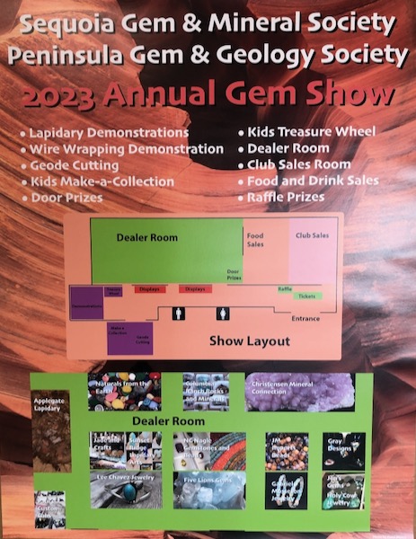 | In 2023, a joint show was held by the Peninsula Gem & Geology Society and the Sequoia Gem & Mineral Society at the Redwood City Communities Activities Building. |